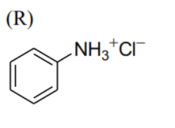 R matches with (1): Anilinium chloride () in equilibrium with aniline reacts with phenyl diazonium salts to undergo coupling reactions, typically forming yellow/orange dyes (e.g., p-aminoazobenzene).